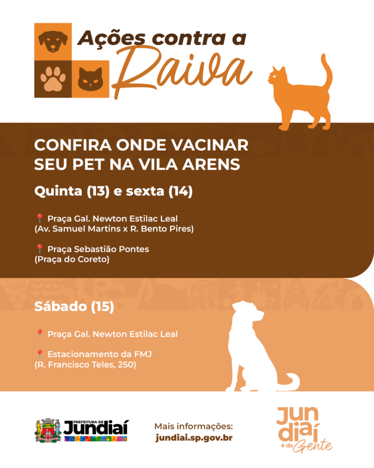A Vigilância da Saúde Ambiental (VISAM) inicia, nesta quinta-feira (13), a vacinação antirrábica de cães e gatos na região da Vila Arens. A ação integra o trabalho de bloqueio vacinal após a confirmação de um caso de raiva em um felino no bairro, registrada em 4 de novembro.